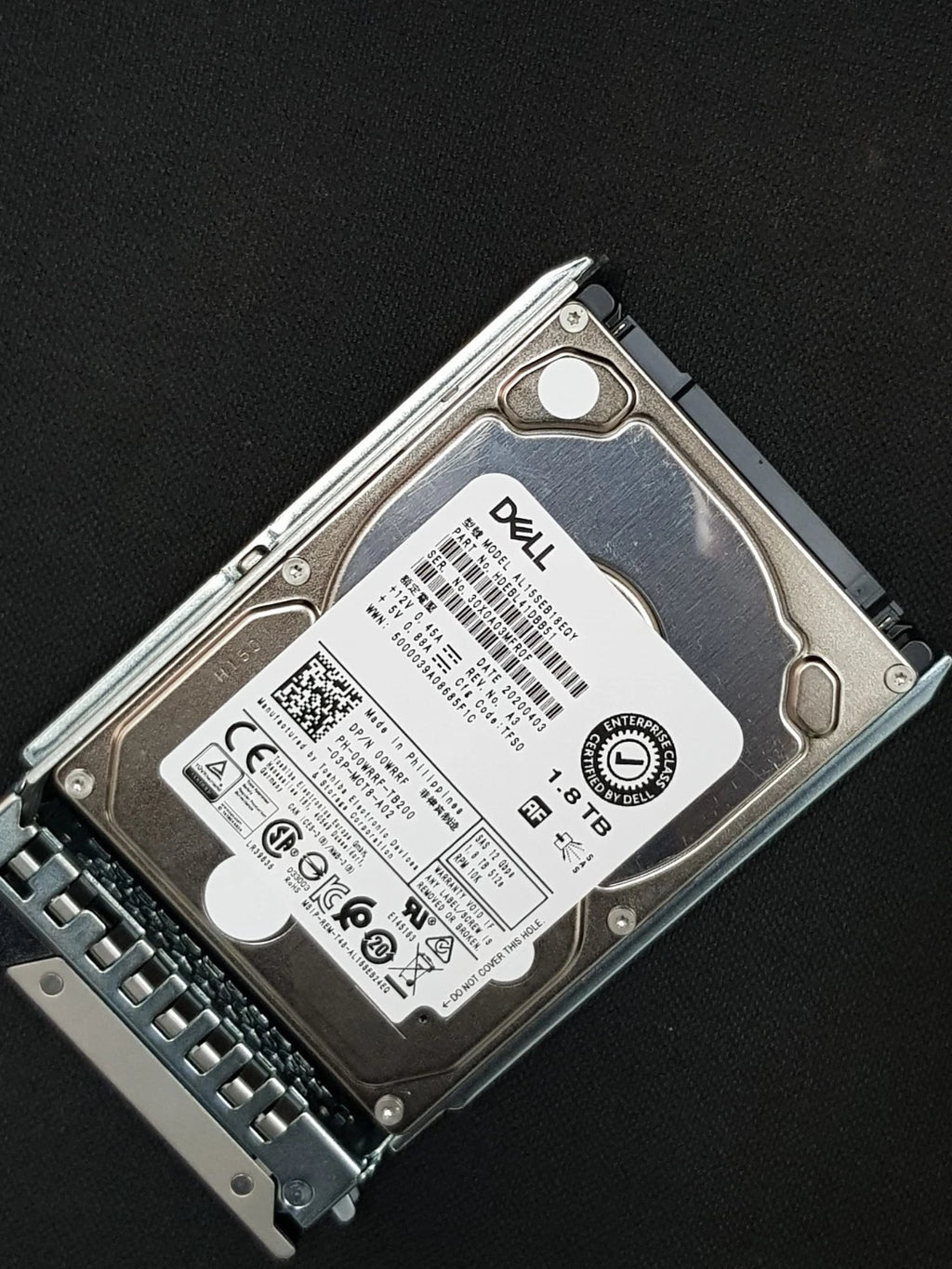 Dell 1.8TB 2.5" SAS 12Gb/s Enterprise HDD, 10K RPM speed, P/N 00WRRF HDEBL41DBB51. High-performance server storage, reliable for enterprise workloads.