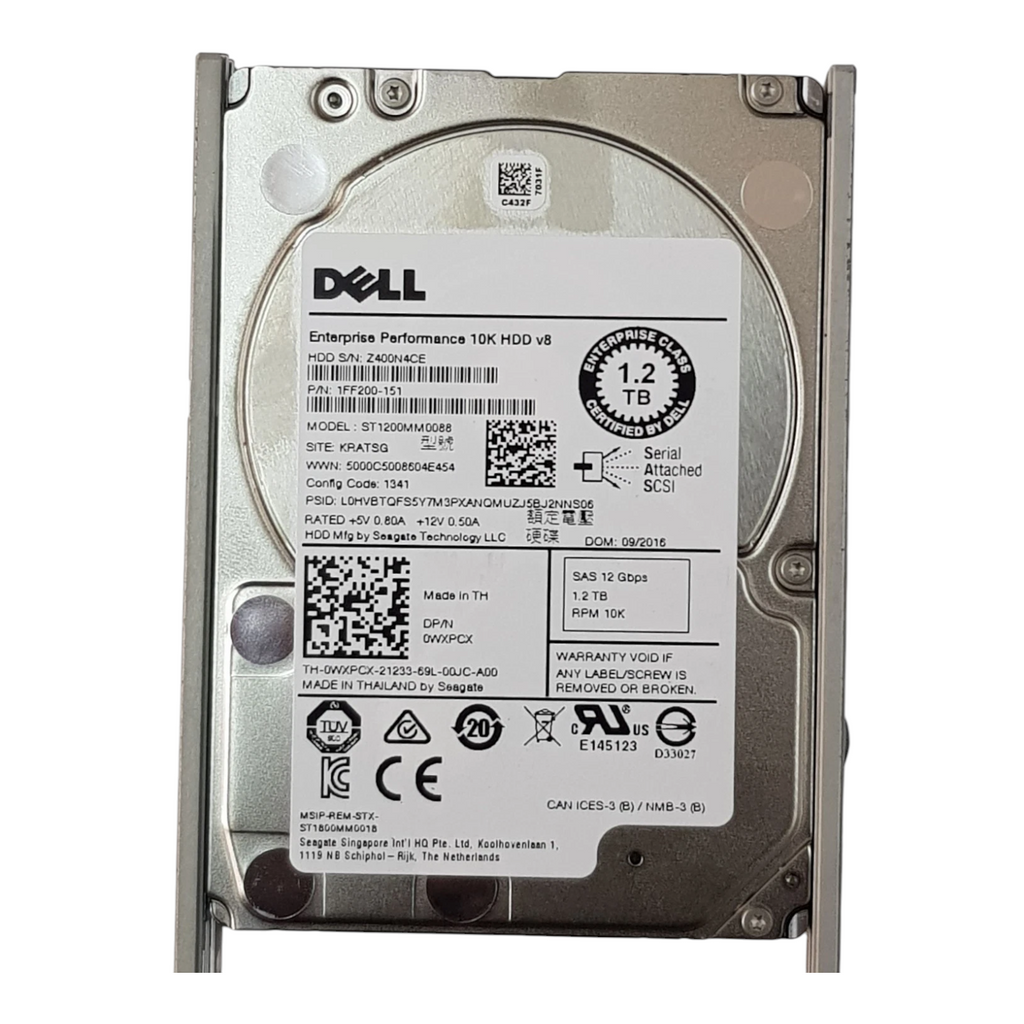Dell 1.2TB SAS 12Gb/s 10K RPM 2.5" HDD ST1200MM0088 (P/N 0WXPCX). Enterprise-class reliability and speed for servers, storage, and mission-critical workloads.