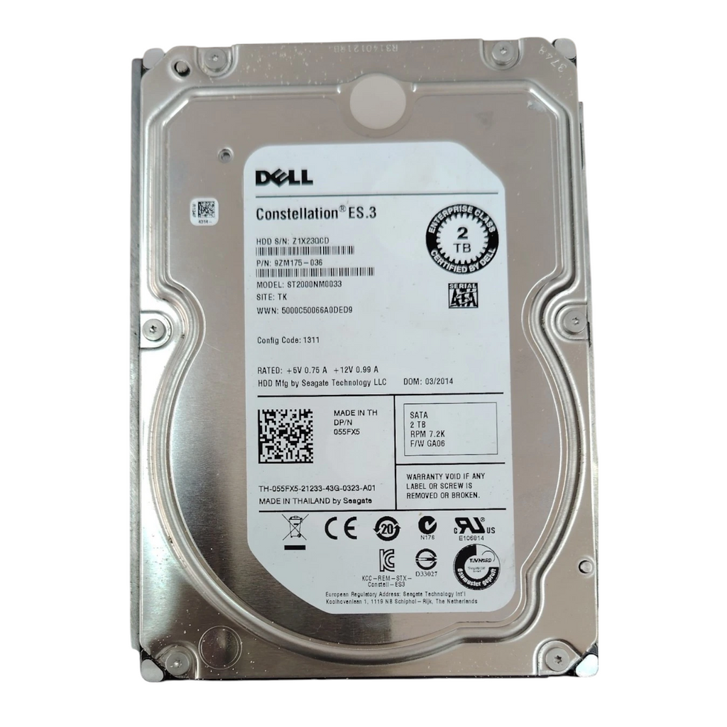 Dell 055FX5 2TB 7200RPM SATA 6Gb/s 3.5" HDD (ST2000NM0033). Enterprise-class reliability, perfect for servers, desktops & storage arrays.