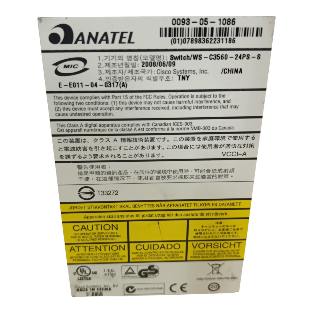Certified worldwide (UL, CE, TÜV, MIC, ANATEL), this switch offers secure, reliable networking for offices, campuses, and enterprise networks. Powered by Cisco’s proven IOS software, the Catalyst 3560 series provides robust network security, efficient traffic management, and long-term stability.