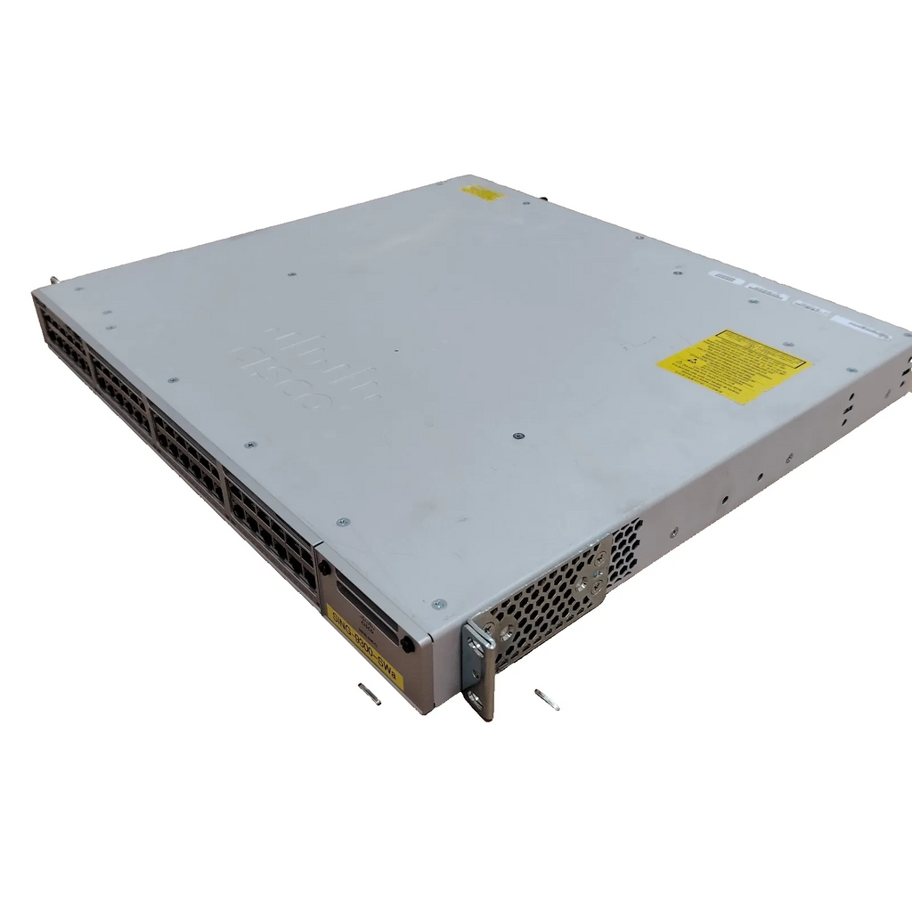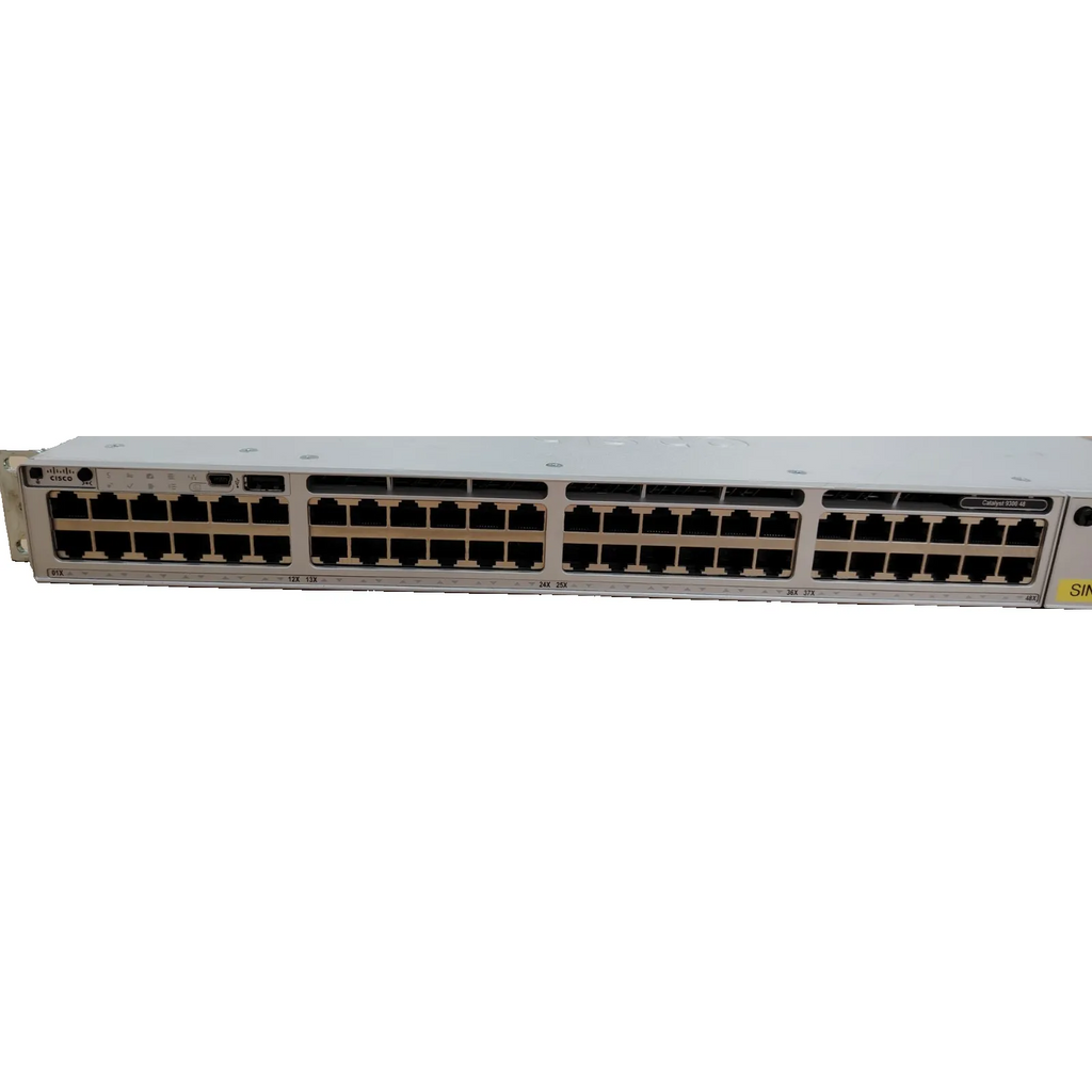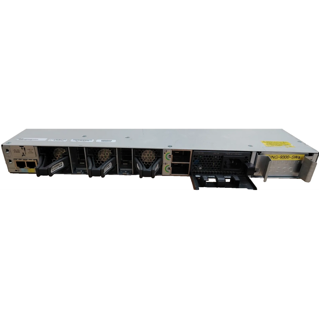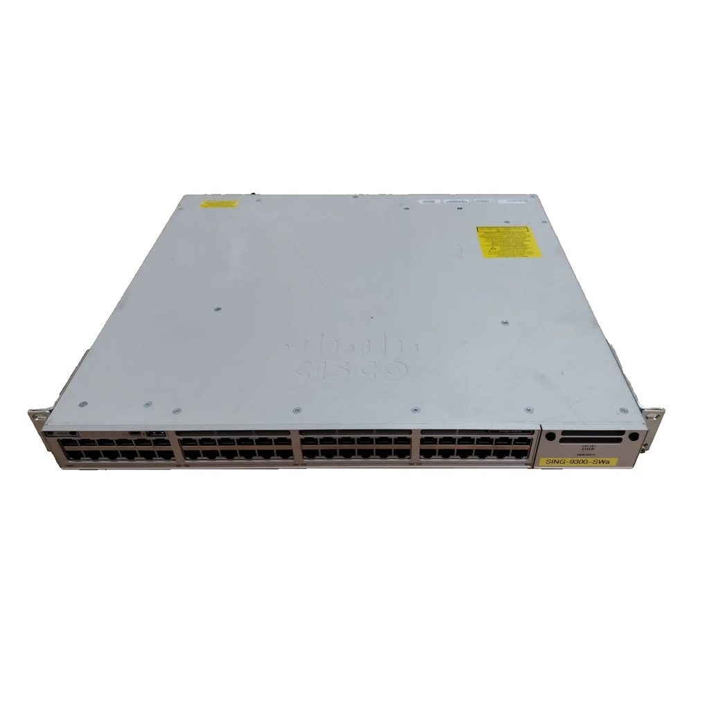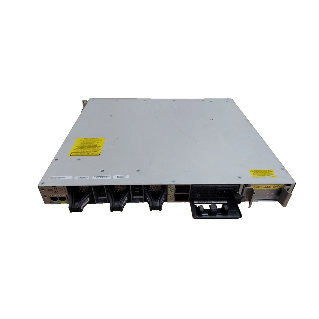 Cisco Catalyst C9300-48T-E with 48× Gigabit ports, stackable architecture, and 3x cooling fans. High-performance enterprise switch for modern networks.