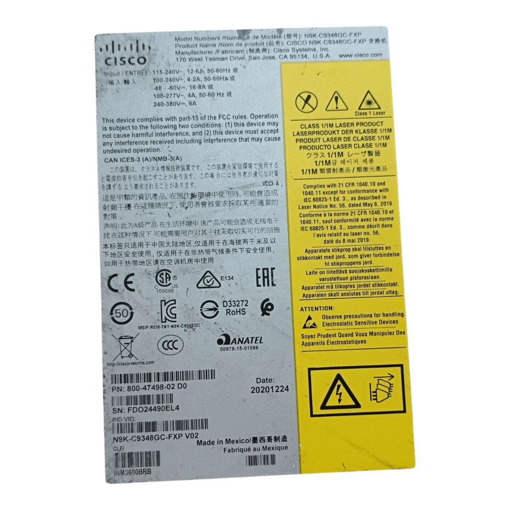 Regulatory Code | N9K-C9348GC-FXP V02 |