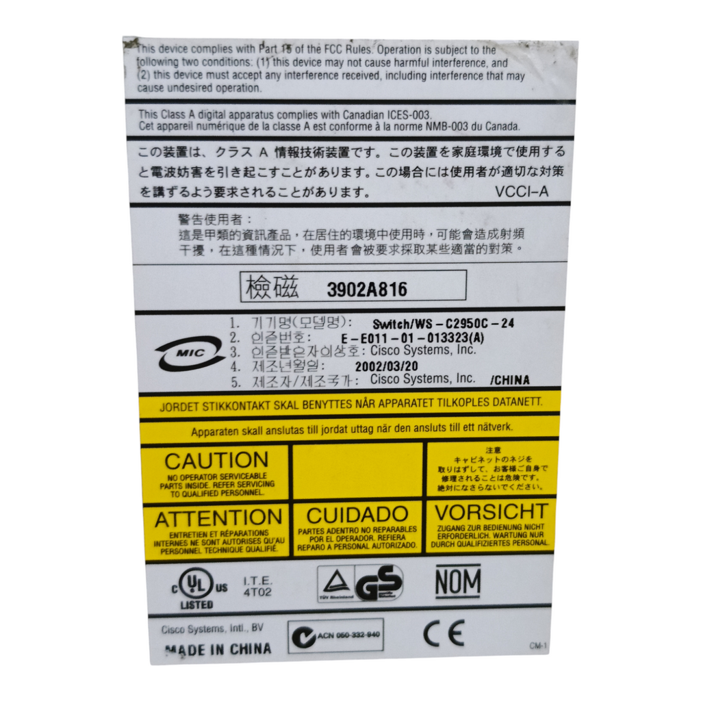 Compact and rackmountable, this switch is easy to deploy in business environments where stability, compliance, and scalability are essential. With global certifications (FCC, CE, UL, NOM), the Cisco WS-C2950C-24 is a trusted solution for organizations that demand enterprise-grade networking at an affordable price point.