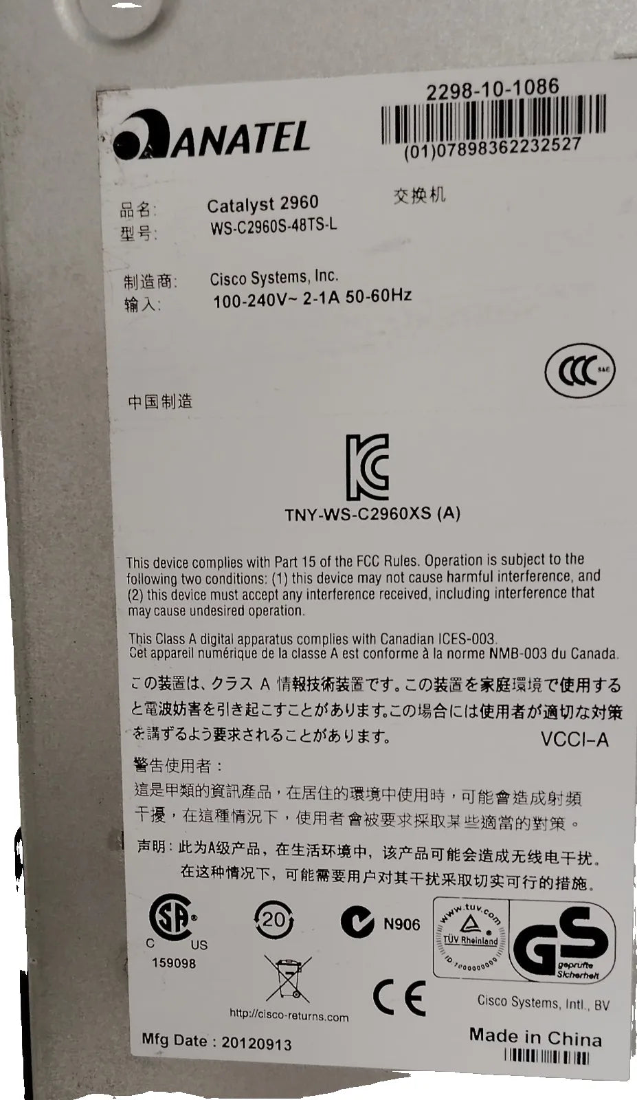 Cisco WS-C2960S-48TS-L Catalyst Switch with 48 Gigabit ports & LAN Base. Enterprise-class security, scalability & reliable Layer 2 networking.