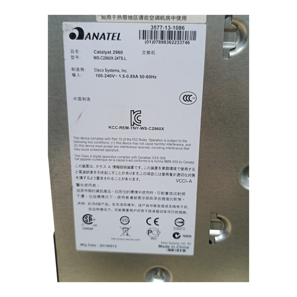 Cisco WS-C2960X-24TS-L 24-Port Gigabit Managed Switch with LAN Base. Reliable Layer 2 networking, enterprise security, scalability, and energy efficiency.