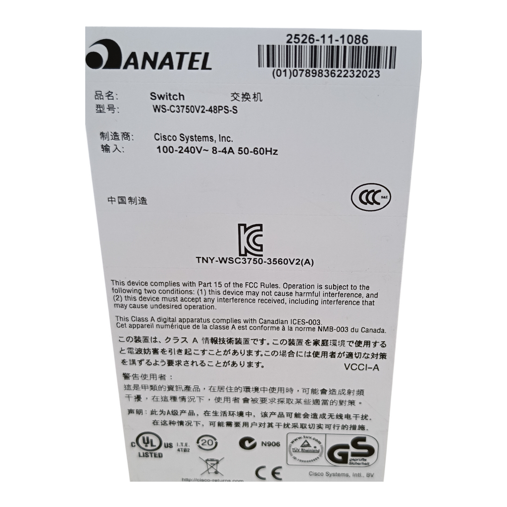 Cisco WS-C3750V2-48PS-S 48-Port Fast Ethernet Switch with PoE. Reliable enterprise performance, Layer 3 routing, and stackable scalability.