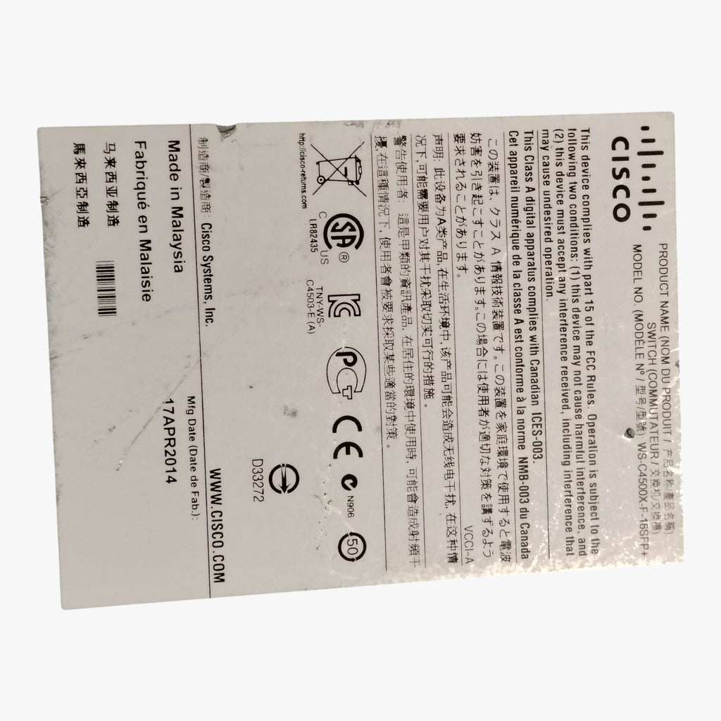 Certified with CE, UL, FCC, and RoHS, this Cisco switch guarantees global compliance and trusted enterprise reliability. Whether you’re upgrading an existing network or deploying a new infrastructure, the WS-C4500X-F-16SFP+ delivers dependable, high-speed performance at scale.