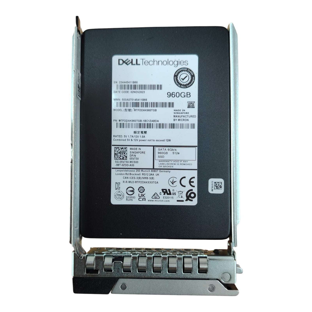 Dell 960GB SATA SSD 05V73V / MTFDDAK960TGB, 2.5" enterprise-grade SSD. High-performance 6Gb/s drive with reliable endurance for servers & storage arrays.