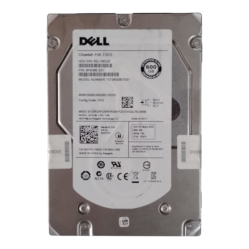 Dell 05XTFH 600GB 15K SAS 6Gb/s 3.5" HDD (Seagate ST3600957SS). Enterprise-grade Cheetah 15K.7 SED drive for servers, storage arrays & data centers.