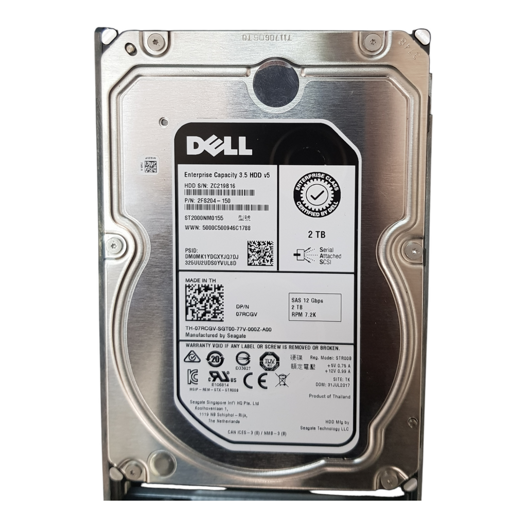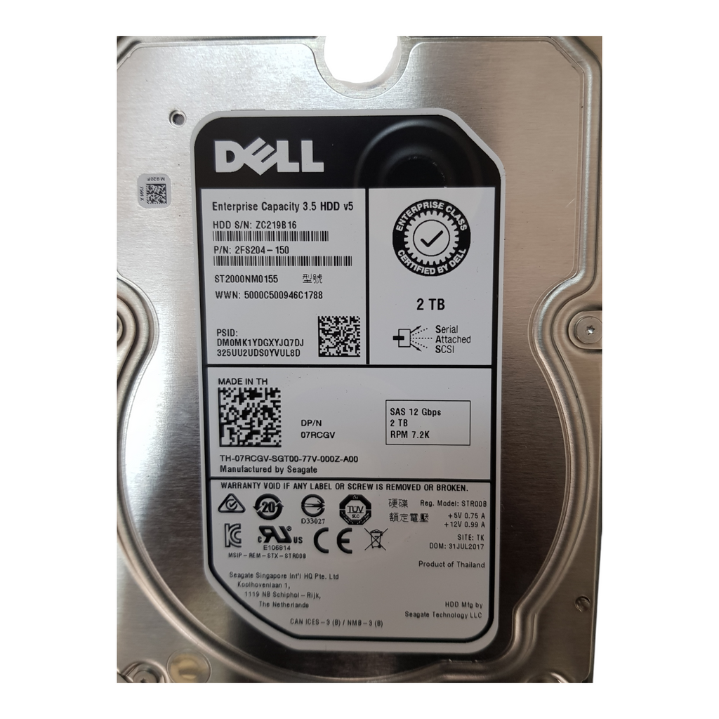 Dell 07RCGV 2TB 7.2K SAS 12Gb/s 3.5" HDD. Enterprise-class Seagate ST2000NM0155 certified by Dell for servers, storage arrays & data center performance.