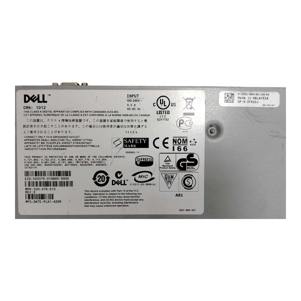 The Dell PowerEdge 180AS 8-Port KVM Console Switch (P/N: 0F622J / F622J) is designed for IT professionals and enterprise environments that require centralized, efficient server management. This rackmount KVM switch allows administrators to control up to 8 servers from a single keyboard, monitor, and mouse, reducing clutter and improving productivity in server rooms.