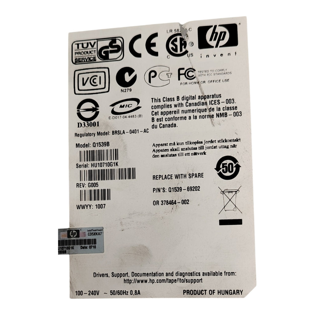 Compact and durable in an external enclosure, the HP Q1539B offers flexibility for deployment across offices, SMBs, and enterprise data centers. It is an excellent choice for businesses that require reliable tape storage with proven HP quality and need compatibility with existing LTO-3 media libraries.