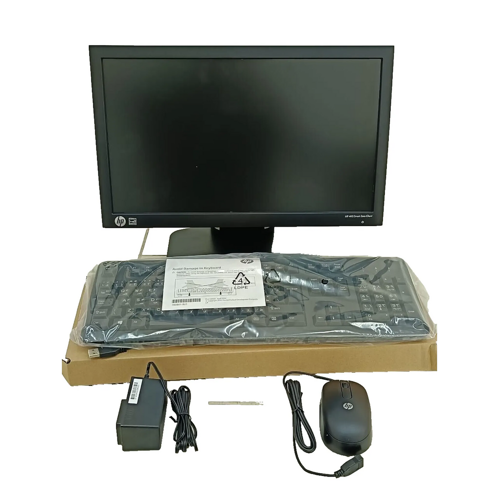 HP T410 AiO Smart Zero Thin Client H2W21AA with 18.5” display, keyboard, and mouse. Efficient thin client solution for IT, VDI, and enterprise environments.