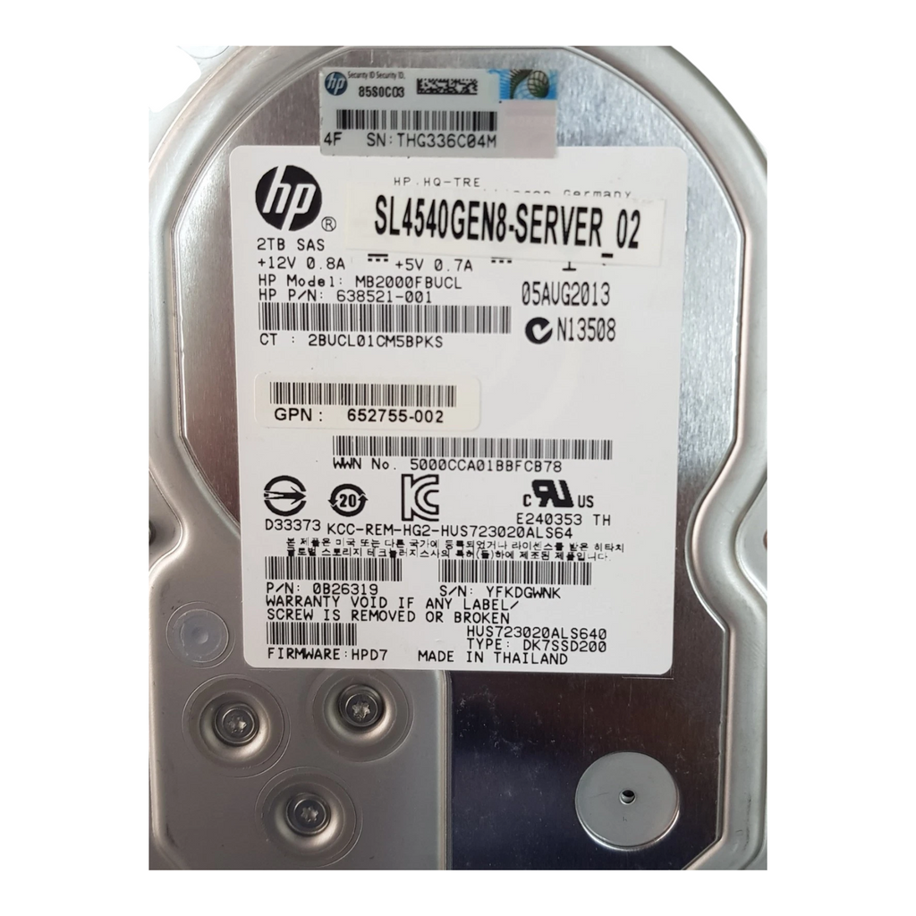 HP 2TB 7200RPM SAS 6Gb/s 3.5" Enterprise HDD 638521-001. Reliable high-capacity hard drive for HP ProLiant servers and enterprise storage solutions.