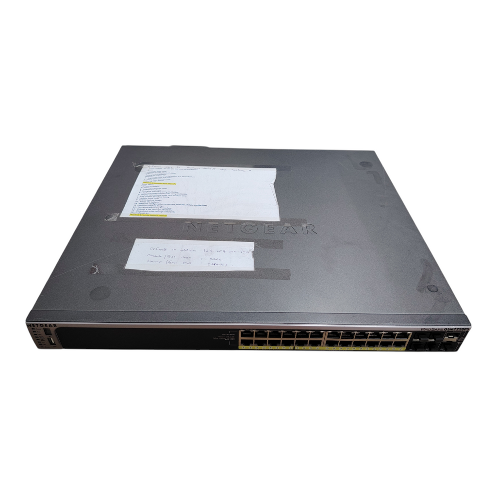 NETGEAR GSM7228PS 24-Port PoE Gigabit Managed Switch with 4 SFP and 2 SFP+ uplinks. Reliable, scalable, and ideal for SMB PoE deployments.