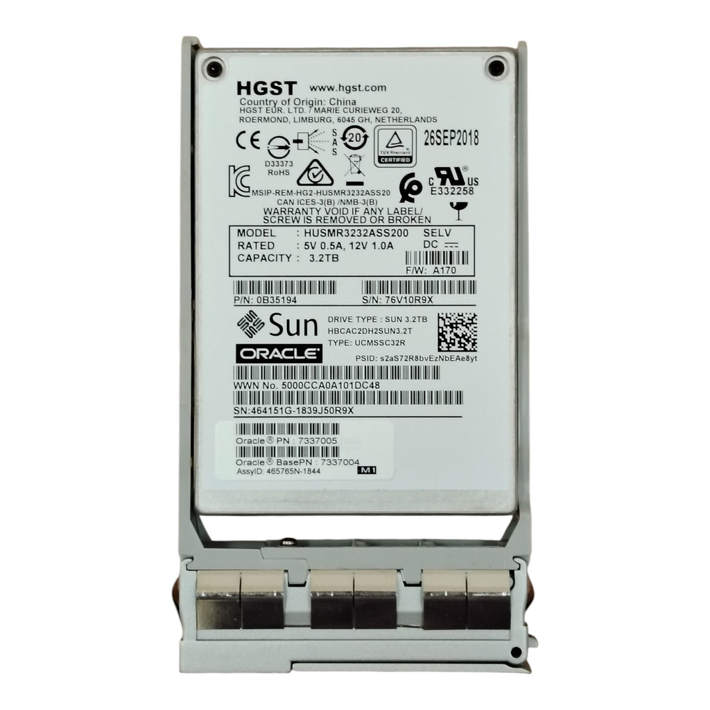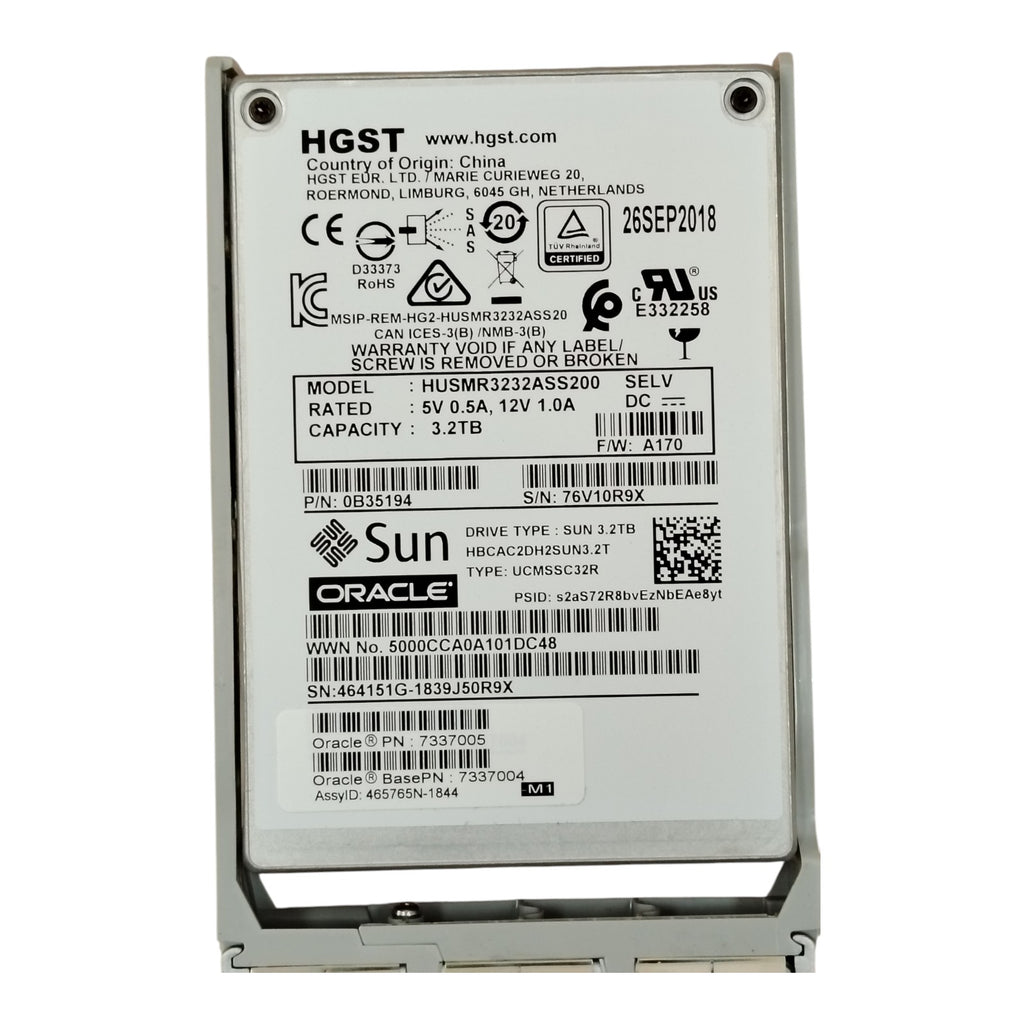 Oracle HGST 3.2TB SAS SSD (P/N: 7337005 / 7337004, 0B35194). High-performance 2.5" enterprise drive designed for Oracle servers and storage systems.