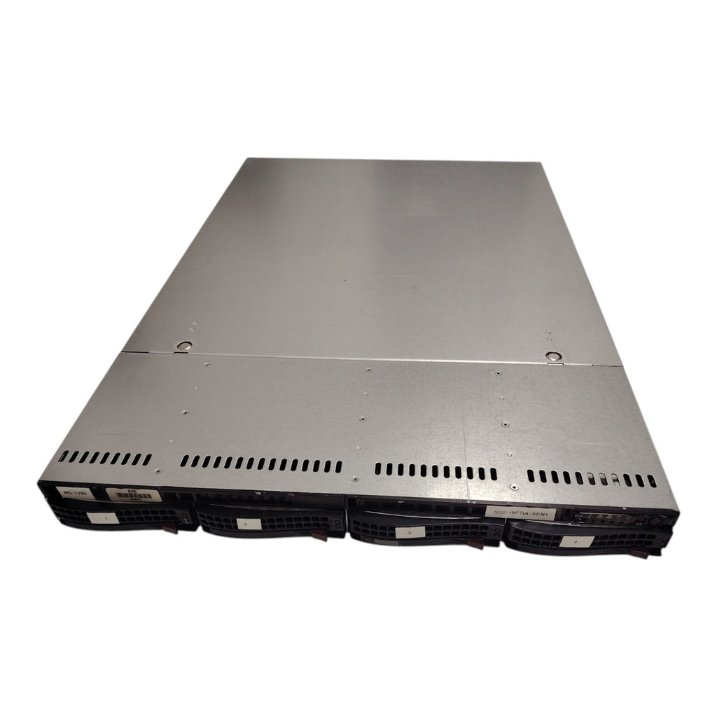 Supermicro CSE-815 server with dual Xeon E5-2620, 128GB RAM, 4x 1.2TB SSD, RAID, Riser, NIC. High-performance 1U solution for data centers & enterprises.
