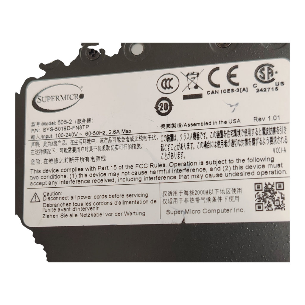 Supermicro 505-2 server with Intel Xeon D-2146NT, 32GB DDR4, 240GB SSD & 200W PSU. Enterprise-grade performance in a compact 1U chassis.